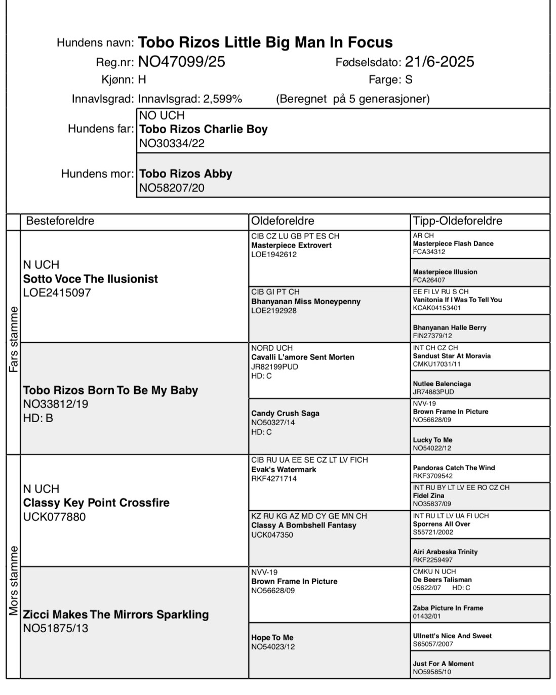 Gøy er en sprudlende og livsglad liten herremann som logrer med hele bakparten i ett sett. Vi kjøpte inn Gøy fordi han har en stamtavle som representerer mange nye og fine pudler som vi håper vil tilføre våre blodslinjer mye positivt. Gøy er en veldig fin modell, høy på beina med kort rygg og gode vinkler foran og bak. Han har en flott tykk og sort pels, god og bred underkjeve og en pinnerett hale. Gøy lever det beste liv hos familien Krogstad/Hansen sammen med 2 barn og bordercollien One. Vi gleder oss til hva fremtiden bringer når vi etterhvert kan blande denne glade krabatens linjer sammen med våre.