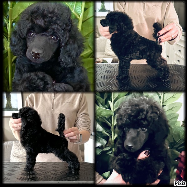 Valpene til Kiwi har blitt drøye 5 uker gamle og har nå fått sitt første fulle stell med bad, føn, kloklipp og barbering av ansikt/poter/intimsoner. I tillegg har jeg håndklippet kroppen deres og de er blitt noen riktig fine små puddel-jenter. De har fått sin 2. ormkur og blitt veid og den minste tispen veier 760 g og den største 940 g. Nå spiser de ca 3 små måltider med Mush Puppy om dagen, men fremdeles er mamma Kiwi sin melk favoritt maten. De er ute av valpebingen flere ganger ila dagen og da leker de med de andre hundene i fokken :)) Du kan se en liten videsnutt av de fra de var ca 4 uker gamle, på vår Insta konto #infocuspoodles.