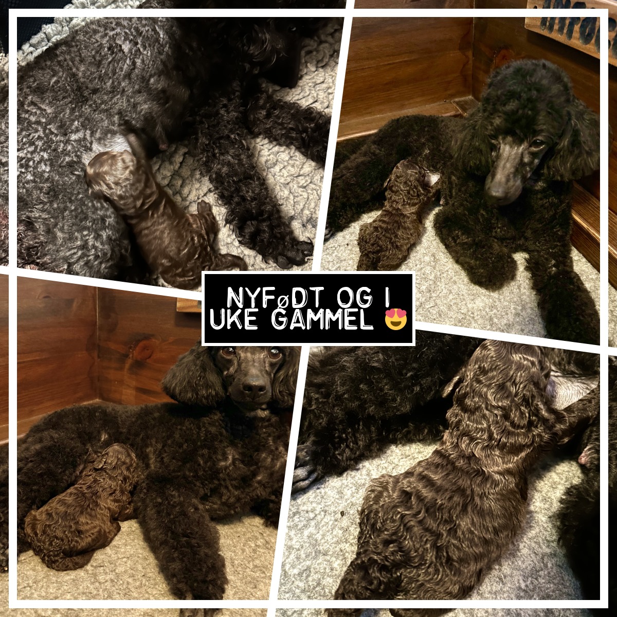 Torsdag 19. mars fødte Liv en stor brun hannvalp på 185 gram. Han kom med rumpa først og måtte ha litt dra-hjelp fra oss menneskene for å komme ut. Etter ca en halv time våknet Liv sine morsinstinkter for fullt og hun vasket han og ga han den viktige råmelken, som hun hadde mye av. Ila uken som har gått, har båndene mellom Liv og valpen blitt veldig sterke. Liv vil ikke forlate han og jeg må bære henne ut for at hun skal få gjort sitt fornødne og hun spurter inn i huset igjen og hopper rett opp i valpekassen for å sjekke at alt er som det skal. I dag har Liv fått seg et velfortjent bad, med dertil klipp av ansikt og poter, samt fått klippet klør og fått en nødvendig tannpuss. Valpen har også fått sin første kloklipp og fordi han har så mye pels måtte han også klippes litt rundt stumpen, for at det skal være lettere å holde han ren. Bildet øverst til venstre for deg, er bilde fra han var nyfødt, de 3 andre bildene er fra han er 1 uke gammel. Neste oppdatering blir når han har åpnet øynene, om ca 2 uker.
